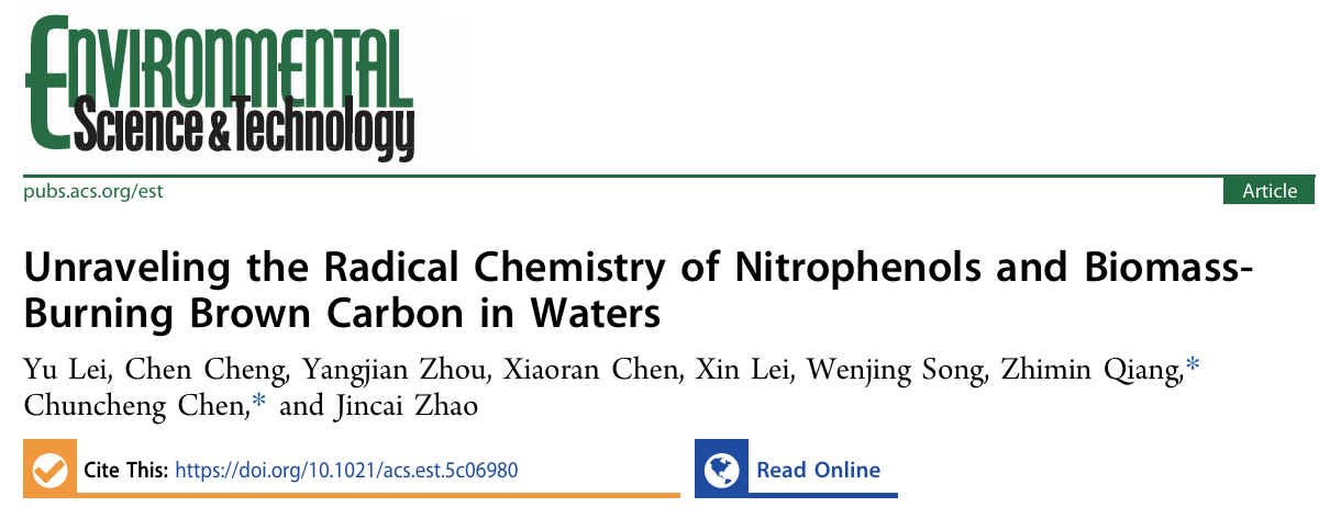 环院智慧|强志民团队ES&T发文揭示水中硝基酚与生物质燃烧棕碳的自由基化学机制