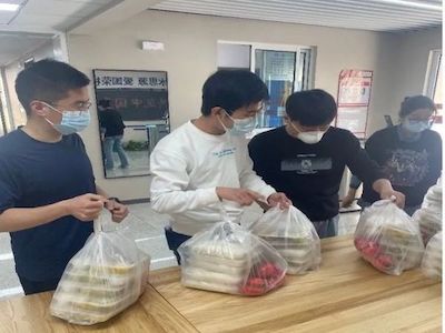 支部书记刘铴主动入驻封控楼栋担任楼长,负责楼栋的日常管理工作;党员徐峰、侯威、蔡文略、骆泽坤担任层长及楼栋志愿者,配合分发物资和餐食,负责消杀和垃圾回收等工作;党员刘蒴果抽调至校团委疫情防控工作组,协助处理各项紧急事务;党员李瑾泽报名超市志愿者,负责维护现场的购物秩序;党员张帆负责给学校各核酸检测点位运送防疫物资;积极分子崔涵博、邓一之、李名阅、蓝心怡、陈洁蓉等报名校园管理和餐饮志愿者,用实际行动积极向党组织靠拢,为校园疫情防控工作贡献青春力量。