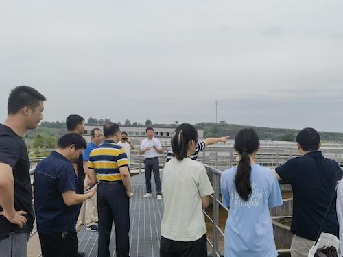 首先,实践团前往上饶市水投污水处理有限公司参观交流。上饶市水投污水处理有限公司坐落在上饶市经济开发区董团乡仙山村,承担上饶市中心城区、带湖片区等生活污水处理工作。实践团师生进入中控室,了解污水处理厂采用的处理工艺、进水情况、出水标准。此外,污水处理厂的中水将回用于当地煤矿企业的冷却水,实现了资源循环。随后,实践团师生实地参观了污水处理厂的建造布局。