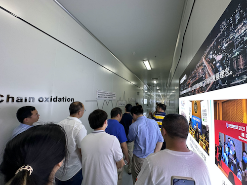 接着,实践团前往晶科能源股份有限公司,参观晶科能源电池智能工厂。晶科能源股份有限公司聚焦光伏产品一体化研发制造和清洁能源整体解决方案,在行业中率先建立了从硅片、电池片到组件生产的垂直一体化产能,产品服务于全球160余个国家和地区,多年位列全球组件出货量冠军。通过公司展厅的介绍,实践团了解了光伏电池的历史沿革、主要研究方向和技术成果。在电池智能工厂中,实践团参观了电池智能生产线,了解电池从原硅片进行制绒、扩散、激光SE、碱抛、背膜等工艺,最终制成电池组件的全过程。