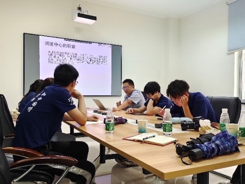 在简短但热烈的启动仪式后,实践团进入了生产技术模块的学习。在调度中心,实践团学习调度中心的系列职能、GIS系统、智慧水务管理平台;在监测中心,实践团参观了先进的监测仪器,并与监测中心主任进行交流。随后,实践团对水源厂、水厂的设施进行了实地参观考察。