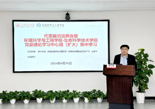4月16日下午,代表委员话两会暨环境科学与工程学院-生命科学技术学院党委理论学习中心组(扩大)集中学习在上海交通大学闵行校区绿色环境楼举行,特邀全国人大代表、上海交通大学环境科学与工程学院黄勇平教授作题为“稳中求进,促进国家的高质量发展——创新高地催生新质生产力”专题讲座。两个学院党委中心组全体成员、党团骨干、师生代表等参加学习。环境科学与工程学院党委书记曹心德主持学习。