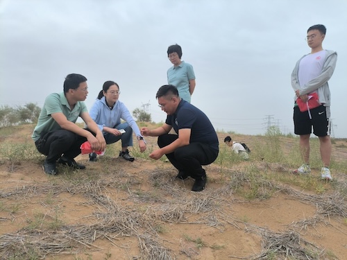 开营仪式后,实践团前往沙漠进行考察。宁夏拥有近70年的治沙历史,实现了让沙漠倒退20余公里的壮举,为世界贡献了中国经验。师生团队在现场对“人进沙退”的宁夏治沙成果表示惊叹。