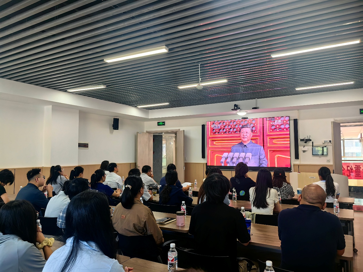 9月3日上午,纪念中国人民抗日战争暨世界反法西斯战争胜利80周年大会在北京天安门广场隆重举行,中共中央总书记、国家主席、中央军委主席习近平发表重要讲话并检阅部队。环境学院党委组织师生在绿色环境楼100号报告厅主会场、上海交大云南(大理)研究院分会场集中收看大会直播盛况。学院党委书记郑浩、党委副书记李锦红及40余名师生在大理分会场收看直播。其他师生也纷纷通过电视、电脑、手机等多媒体观看视频直播,共同见证这一庄严而震撼的重大历史时刻,厚植爱国情怀,凝聚奋进力量。