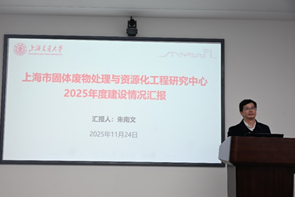 中心执行主任、上海交通大学环境学院教授朱南文代表中心作“2025年度中心总体建设情况”报告,向与会专家介绍了本年度中心在科研项目、代表性论文、知识产权、人才培养及学术交流等方面的成果,重点展示了垃圾焚烧、渗滤液控氮、生活垃圾恶臭处理、环境功能材料强化废水处理等技术的转化与应用示范进展,并明确了中心在技术转化推广、奖项申报、国际合作等领域的下一步规划。