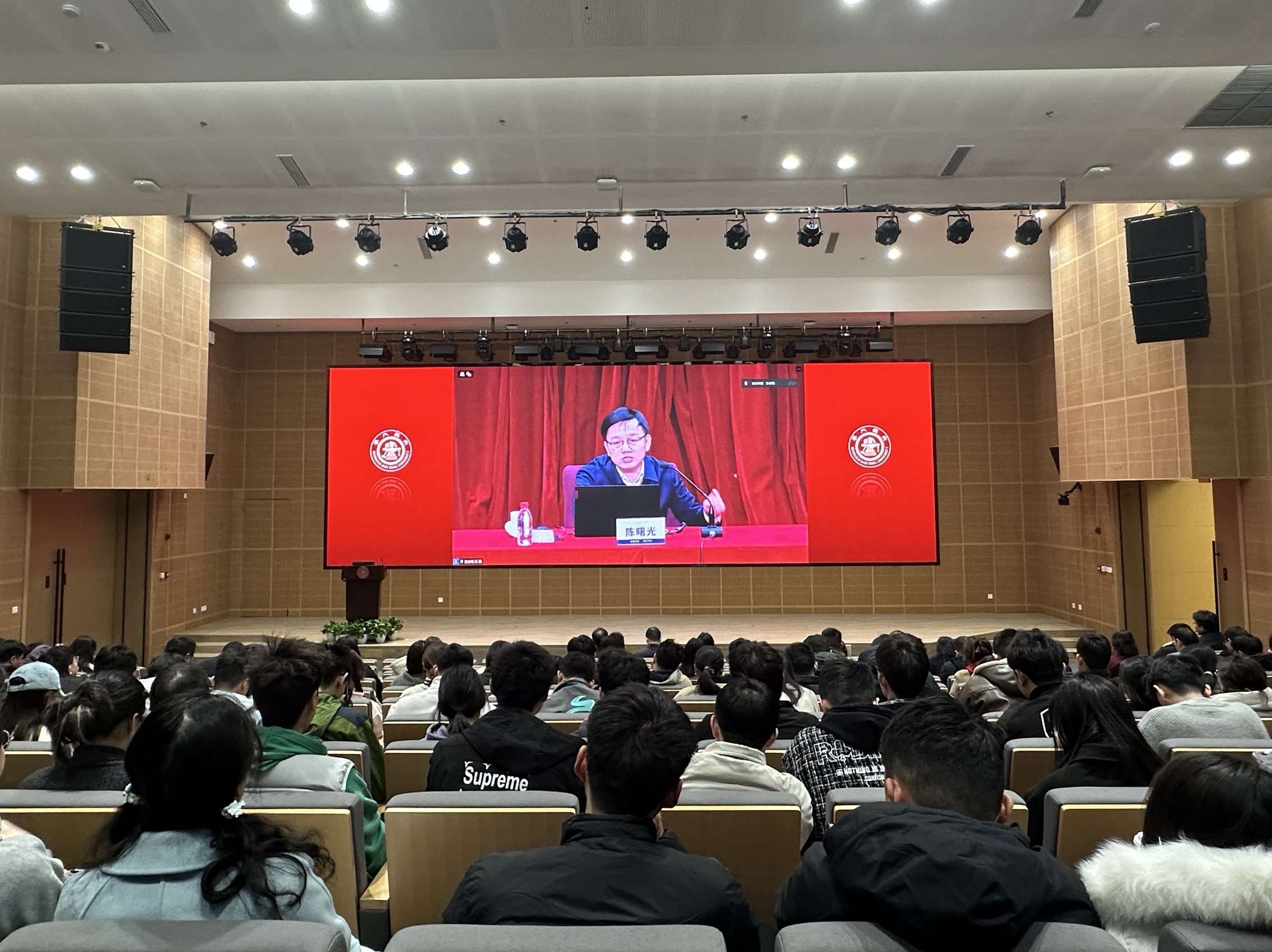 为深入学习贯彻习近平新时代中国特色社会主义思想,进一步深化党的创新理论武装,12月10日,上海交通大学举办2025年秋季学期党员基本培训第二次集中大课,组织观看由中共中央党校科研部主任陈曙光教授主讲的《深入学习贯彻习近平新时代中国特色社会主义思想》视频报告。学院全体师生党员在绿色环境楼100号报告厅参加学习。校党委副书记、副校长胡薇薇主持党课。