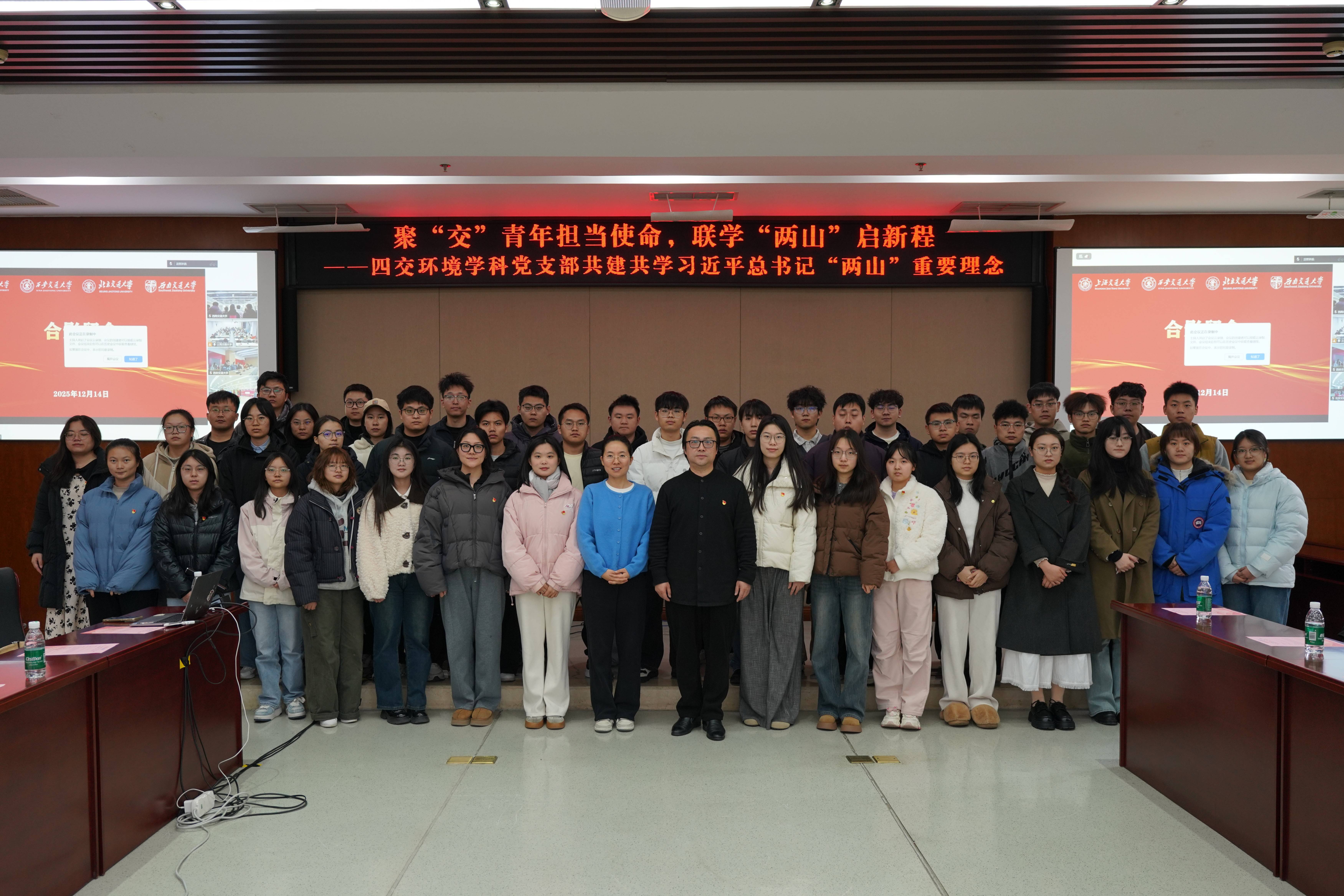 为迎接交通大学建校130周年华诞,同时纪念“两山”理念提出20周年,上海交通大学、西安交通大学、西南交通大学和北京交通大学四所同根同源的兄弟院校环境学科相关学院13个学生党支部于12月14日携手开展了“聚‘交’青年担使命,联学‘两山’启新程”线上联合主题党日活动,以思想共振凝聚行动合力,以红色传承呼应时代征程,共同书写服务国家生态文明建设与高质量发展的交大篇章。此次主题党日活动由上海交大环境学院2025级博士生党支部发起。