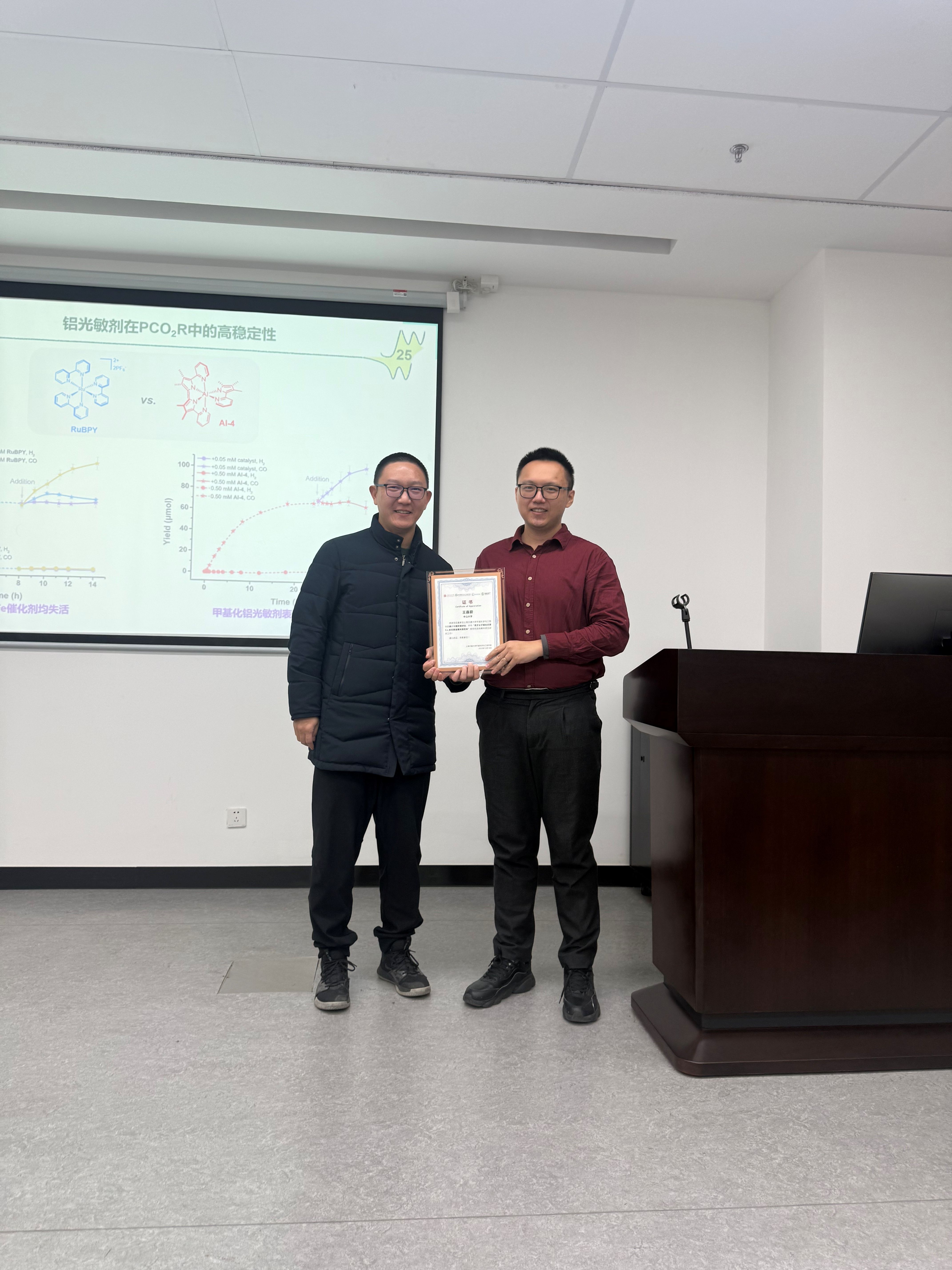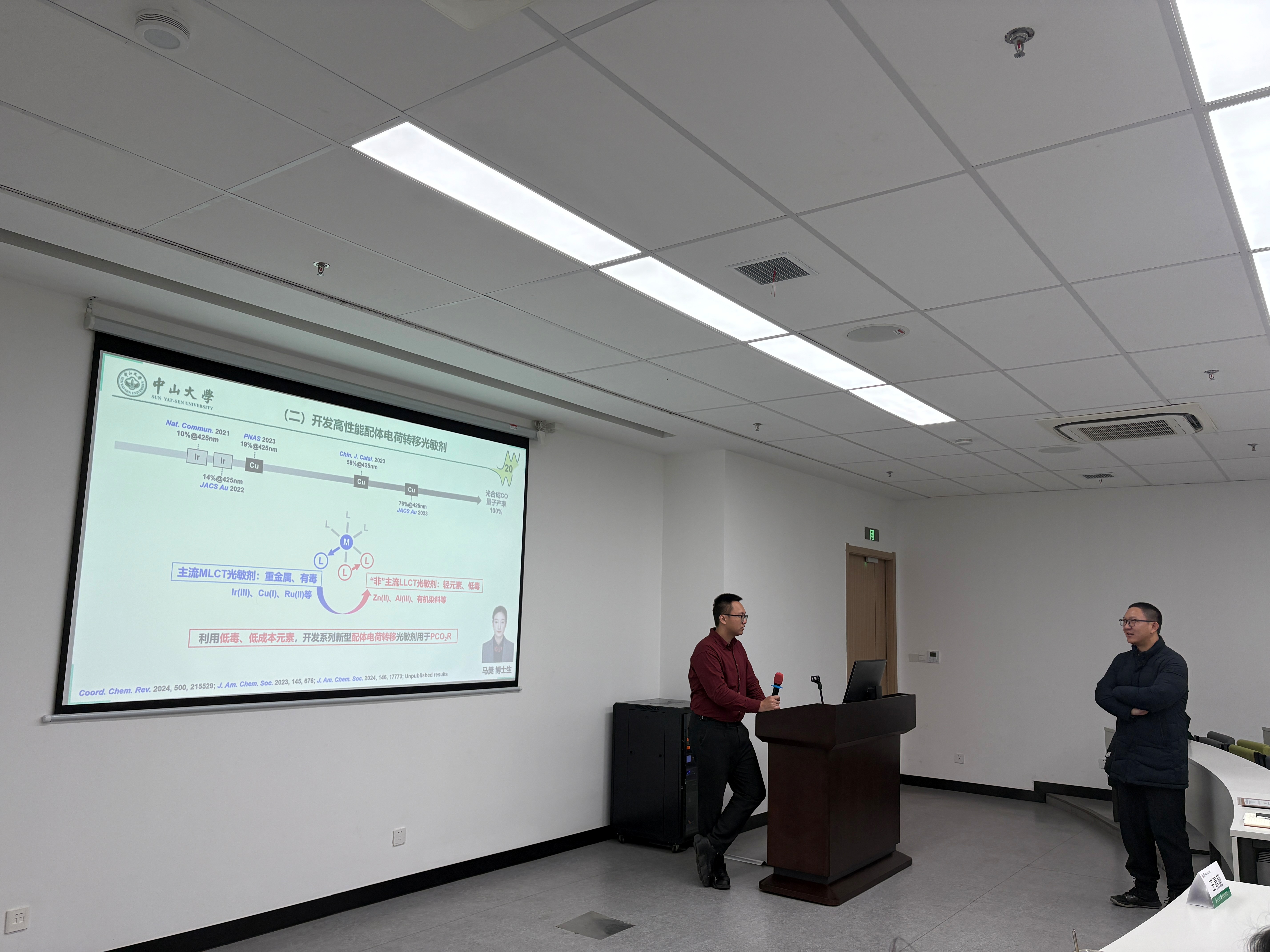 近日,应上海交通大学环境学院李侃副教授邀请,中山大学化学工程与技术学院王嘉蔚副教授做客第218期环境讲坛,在绿色环境楼200会议室与交大师生进行学术交流,带来题为“用于分子催化还原CO2的无贵金属光吸收体”的精彩学术报告。报告由李侃主持。