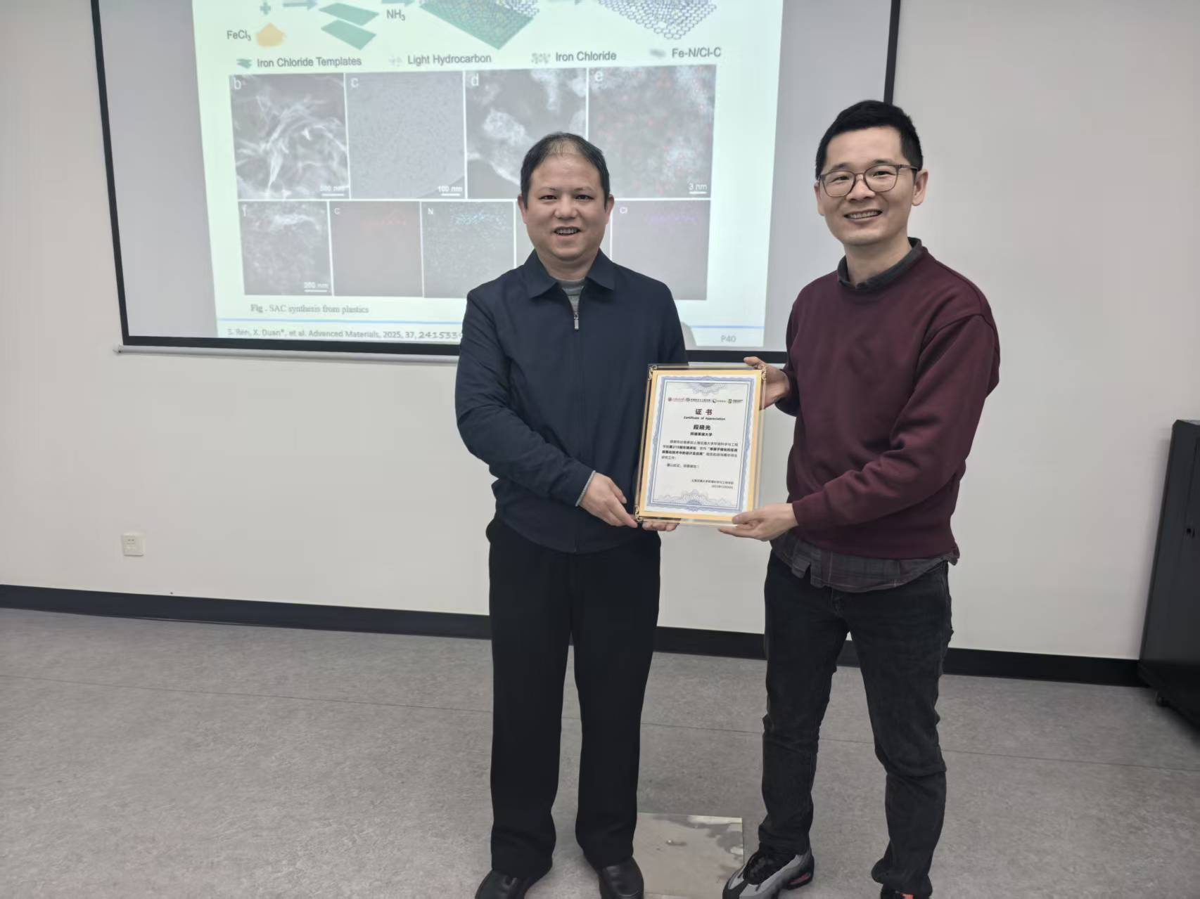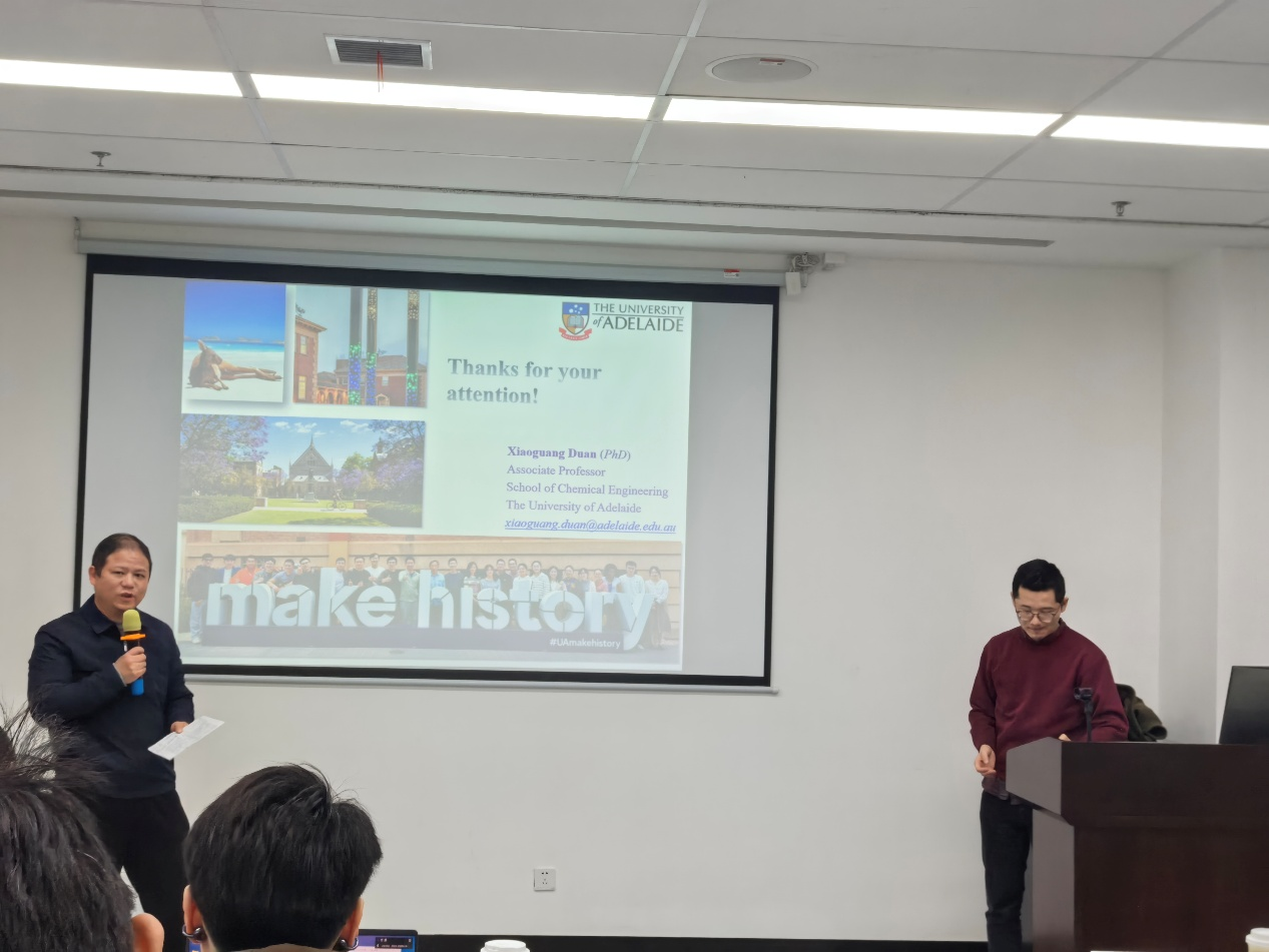 2025年12月26日,应上海交通大学环境科学与工程学院龙明策研究员邀请,澳大利亚阿德莱德大学化学工程学院段晓光教授做客第219期环境讲坛,在绿色环境楼200会议室与交大师生进行学术交流,带来题为“单原子催化剂在高级氧化技术中的设计及应用”的精彩报告。此次报告由龙明策主持。