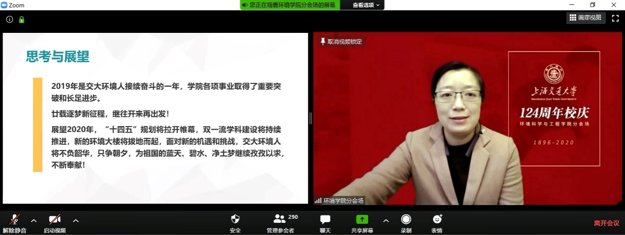 最后,学院院长耿涌在总结中表示,虽然学院和校友们在地理位置上可能相隔千里,但彼此守望牵挂。感谢广大环院校友们、老师们、同学们用云端相聚的方式共庆母校124周年诞辰,与老师们、学弟学妹们展开互动交流。学院的成就与辉煌,凝聚着全体师生和校友的智慧和汗水,学院的发展需要校友们的共同参与。希望校友与学院携手向前,助力学院向前发展。