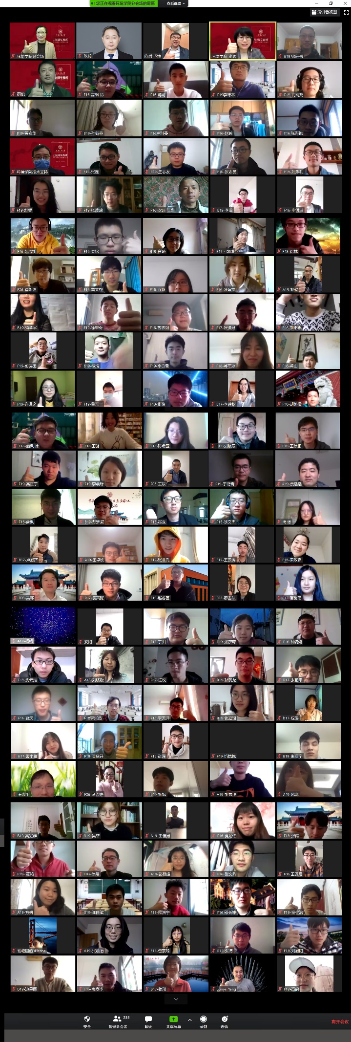 云相聚,心相近。校庆直播结束后,学院开设校友“云座谈”环境学院分会场,与近300名海内外校友们、老师们、同学们相聚云端,聚首畅谈,回忆求学岁月,了解学院发展,共话学院和学校未来发展的美好篇章。