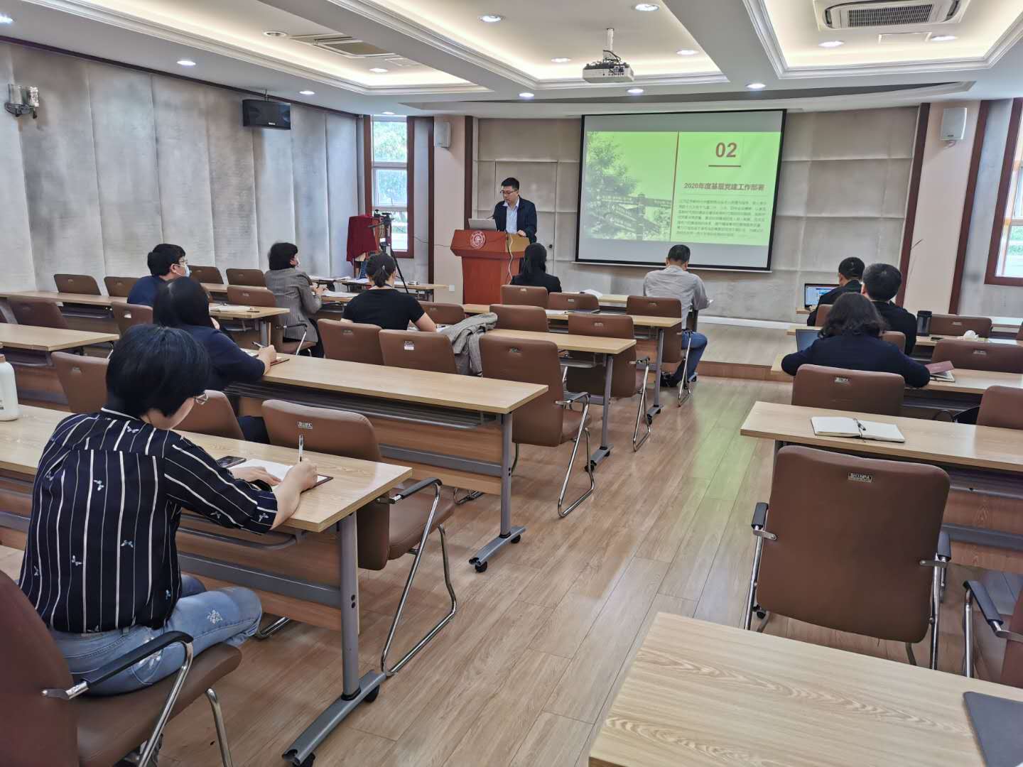 最后胡薇薇总结指出在全球疫情防控背景下,学院由上至下要明确重点任务,准确把握党建工作新要求。一是要持续深化政治理论武装。要深化巩固主题教育成果,建立深化巩固主题教育长效机制,围绕学院中心工作抓党建;二是牢牢把握意识形态主阵地。当前国内外疫情防控形势复杂,新形势下学院意识形态工作责任重大,必须强化政治担当,落实政治责任,要牢牢把握意识形态和思想舆论工作政治阵地;三是要持续培育风清气正的良好生态。要落实好党委廉政建设的主体责任,压实班子成员一岗双责,强化党支部廉政建设的主责意识,推动学院党员干部在新时代展现新气象新作为。