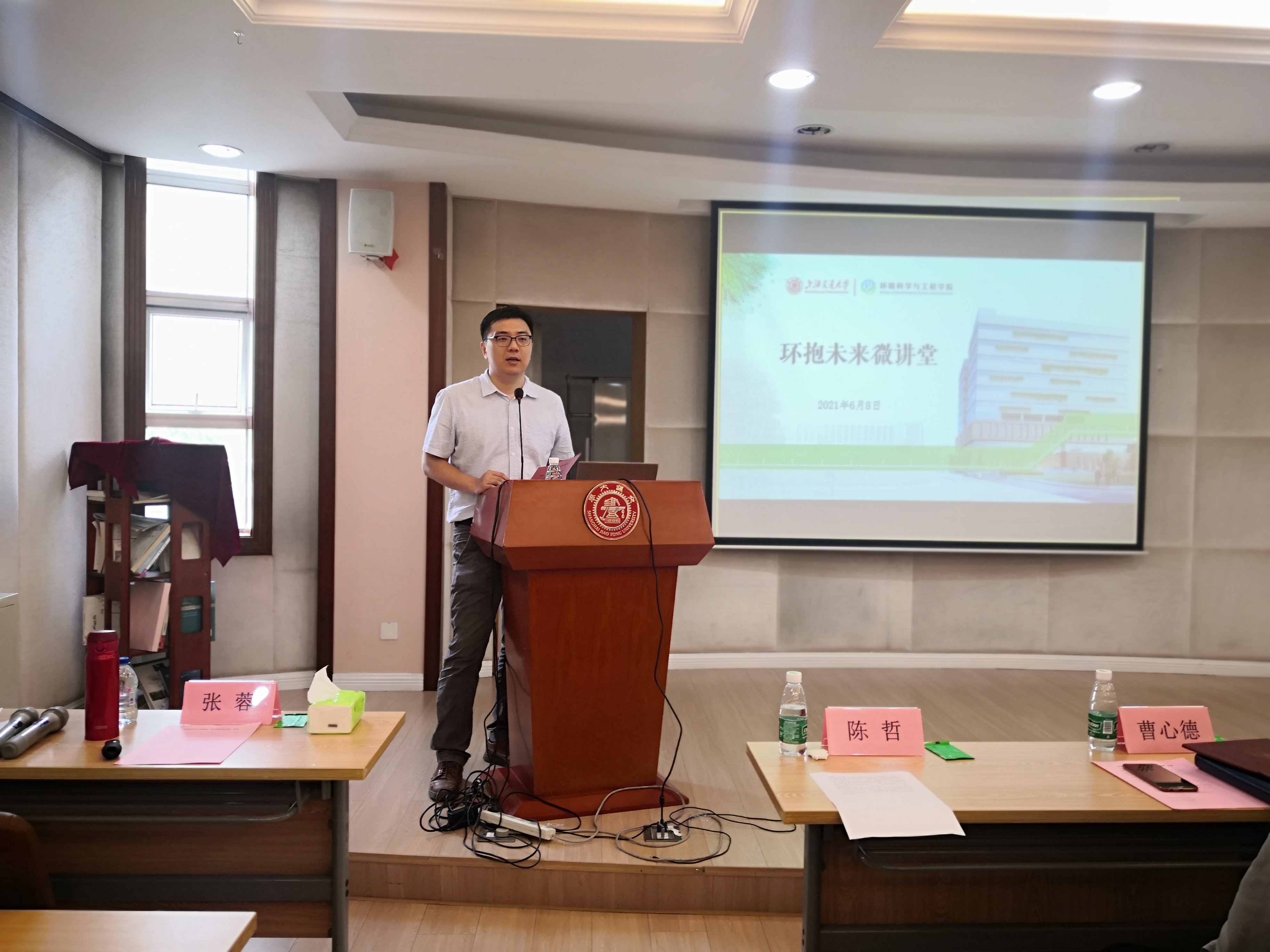 2021年6月8日,第一期“环抱未来微讲堂”在上海交通大学环境科学与工程学院二楼报告厅举行。F03级环境学院本科校友、中国天楹股份有限公司海外事业部总经理徐梁、上海交通大学校友总会办公室副主任张立强、环境科学与工程学院常务副院长曹心德、学院党委副书记陈哲、学院校友联络与筹资主管张蓉等出席了本次活动,活动由陈哲主持。