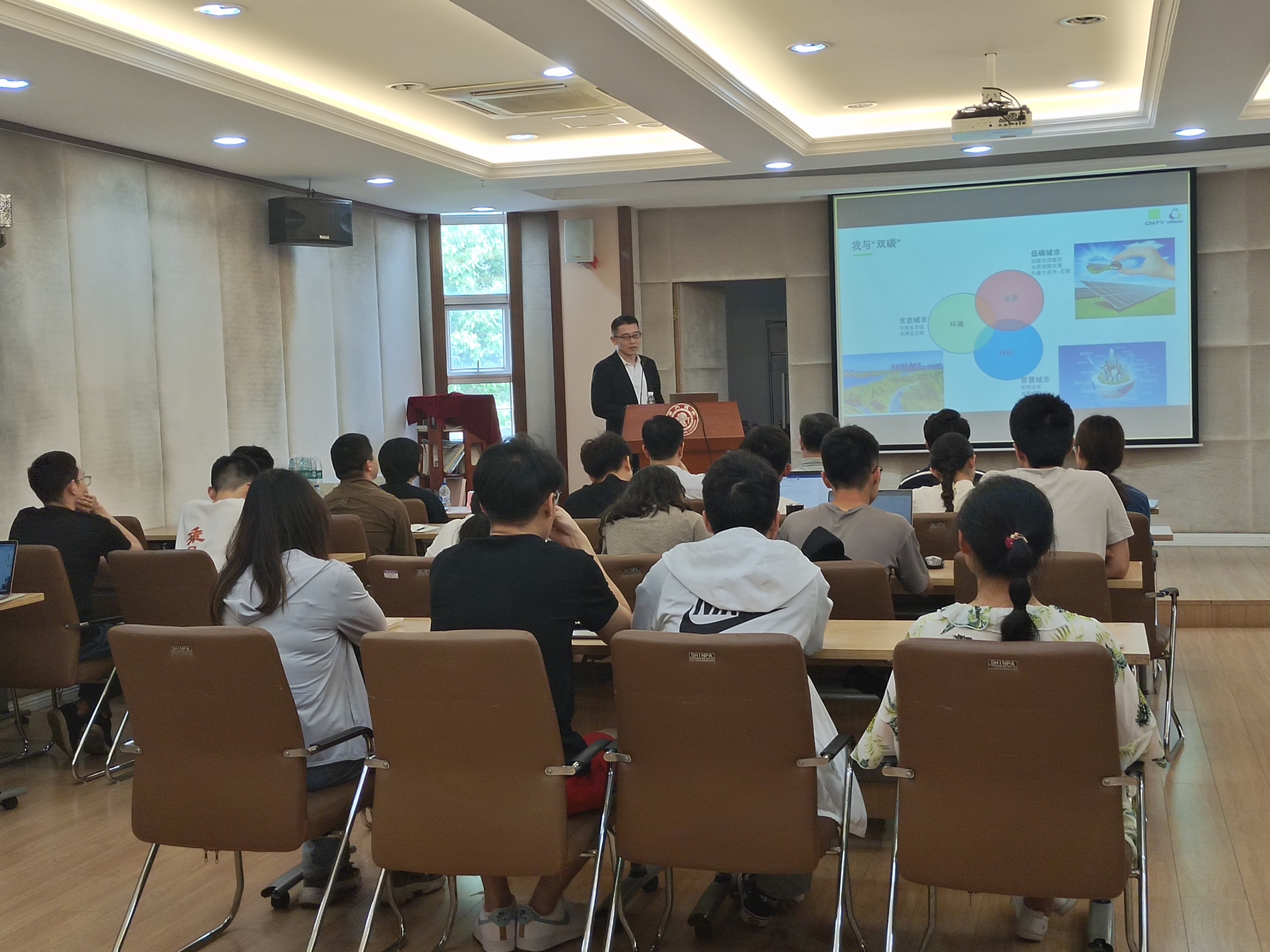 随后,学院常务副院长曹心德从科研成果、人才培养和校友服务三方面介绍环境学院在“双碳”战略背景下的发展。他希望“环抱未来微讲堂”可以加强校友与母校、校友之间、校友与在校生的联系,引导学生对绿色低碳领域的认知,汇聚校友力量共同推动绿色低碳领域的创新发展。
