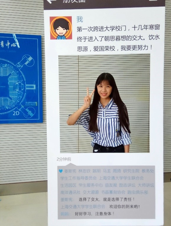 2010年,当我还是一个小女孩儿的时候,我在上海世博会碰到了一群来自交大的志愿者们。他们热情地牵着我的手,带我进入园区,说着流利地道的英语,接待自世界各地的游客。望着哥哥姐姐们自信大方的身影,我羡慕极了,对妈妈说,将来我也要考交通大学。