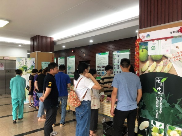 中午时分由20级硕士生党支部组织在环境学院一楼大厅现场布展,提供各类绿色新鲜水果试吃服务。三位果蔬负责人向师生们介绍了自家特色农副产品、并普及了果蔬种植农业技术。师生们试吃了蜜梨、葡萄、火龙果、香瓜、小番茄等时令果蔬,纷纷表示水果又新鲜又可口,品质和口感非常不错,能够不出门在学院吃到家门口放心的绿色食品感到非常地幸福。大厅里欢声笑语,前来试吃和购买的师生络绎不绝,大家提着各色果蔬满意而归。有不少老师说:“工会是我家,温暖你我他”。