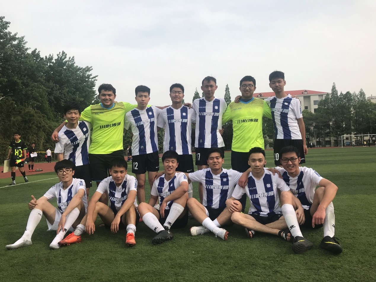 这四年,与我相伴前行的还有环院足球队(现环化联队)。大二那年我刚加入球队,满怀信心,却经历了一个赛季的失利,但是所幸有郁导、李佳幸、冯修平等几位学长一直鼓励大家,我们球队才没有因此沉沦。我对自己第一次在大学参加比赛的表现很失望,将挫败化为动力,我积极参加训练,锻炼体能,当我们与化院组成联队再次出征希望杯时,在乙级取得了全胜,这是大家一起努力的结果。最后一场比赛我即将被换下场时,带着两年前迷失的遗憾,我抓住机会打入了本科四年的第二个进球,上一个进球两年前没能帮球队挽回连败,而这一个进球则为两年多的心结画上了句号。
