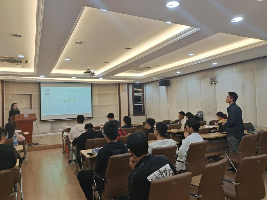 沈嘉琪从碳金融交叉领域发展、碳金融助力产业发展、碳金融应用案例和碳金融背景下职业选择四个方面展详细介绍了金融行业的发展。她表示环境学院同学选择碳金融行业时有自己专业技术优势,但也要同时注重个人金融相关能力的提升,接触最前沿的研究。与会同学展现出极高的参与热情,现场展开了热烈的提问和交流他们表示沈学姐的分享让自己对碳金融行业有了更清晰的认识,明确了未来的努力方向。