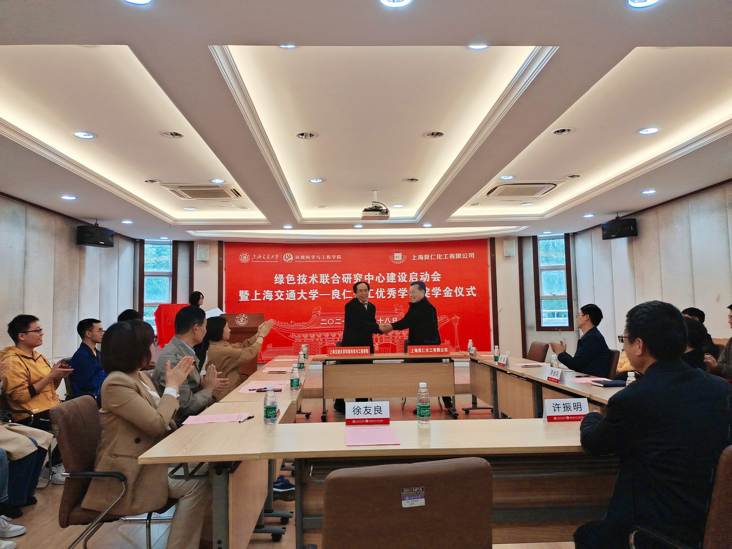 11月18日,绿色技术联合研究中心建设启动会暨上海交通大学—良仁化工优秀学生奖学金颁发仪式在环境学院二楼报告厅举行。上海良仁化工有限公司董事长兼总经理徐友良、环境学院副院长许振明、党委副书记张洋、长聘教授周保学、副教授李金花、副研究员白晶、科技发展办公室主任陈思、团委书记于爱涛等出席,会议由在职学历及非学历教育、校友联络工作主管张蓉主持。
