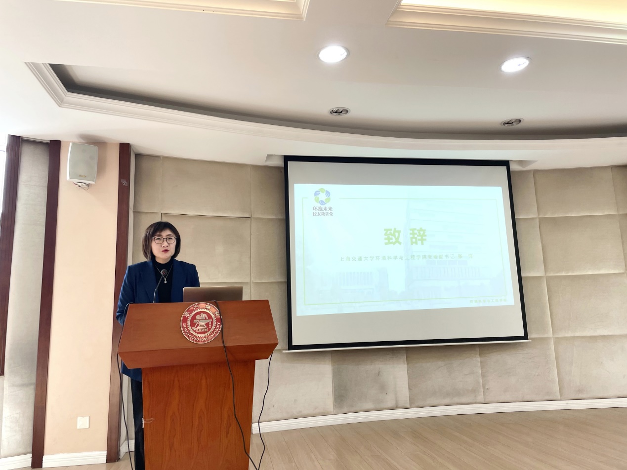 张洋在开场致辞中表示,今年是建党一百周年,学院结合自身学科特色积极对接 “双碳”战略开设“环抱未来校友微讲堂”。微讲堂聚焦绿色低碳领域,旨在通过邀请低碳行业交大校友回校开讲的形式,搭建校友互动平台,加深在校生对绿色低碳领域的认知,汇聚交大力量共同推动低碳行业的发展。她希望同学们能在微讲堂短短1小时中多多交流、碰撞出更多火花。